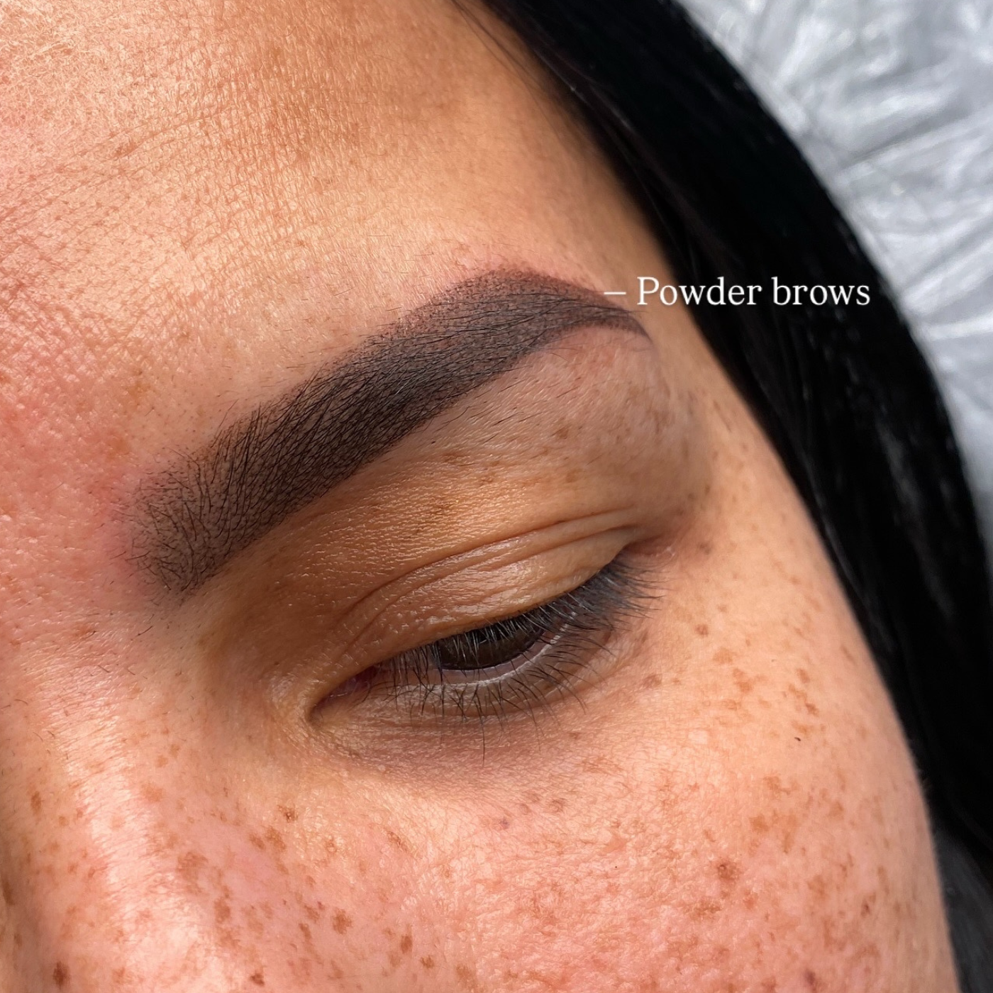 Soft Powder Brows is a technique that delivers a soft, shaded look, similar to a filled-in brow pencil/powder effect. The front of the brows are softly faded and gradually darken towards the tail. We also offer a borderless technique for an even softer, more natural finish. This technique lasts the longest and is best suited for anyone that desires a powdered brow look. It’s especially ideal for oily skin types or clients with minimal to no natural brow hair.