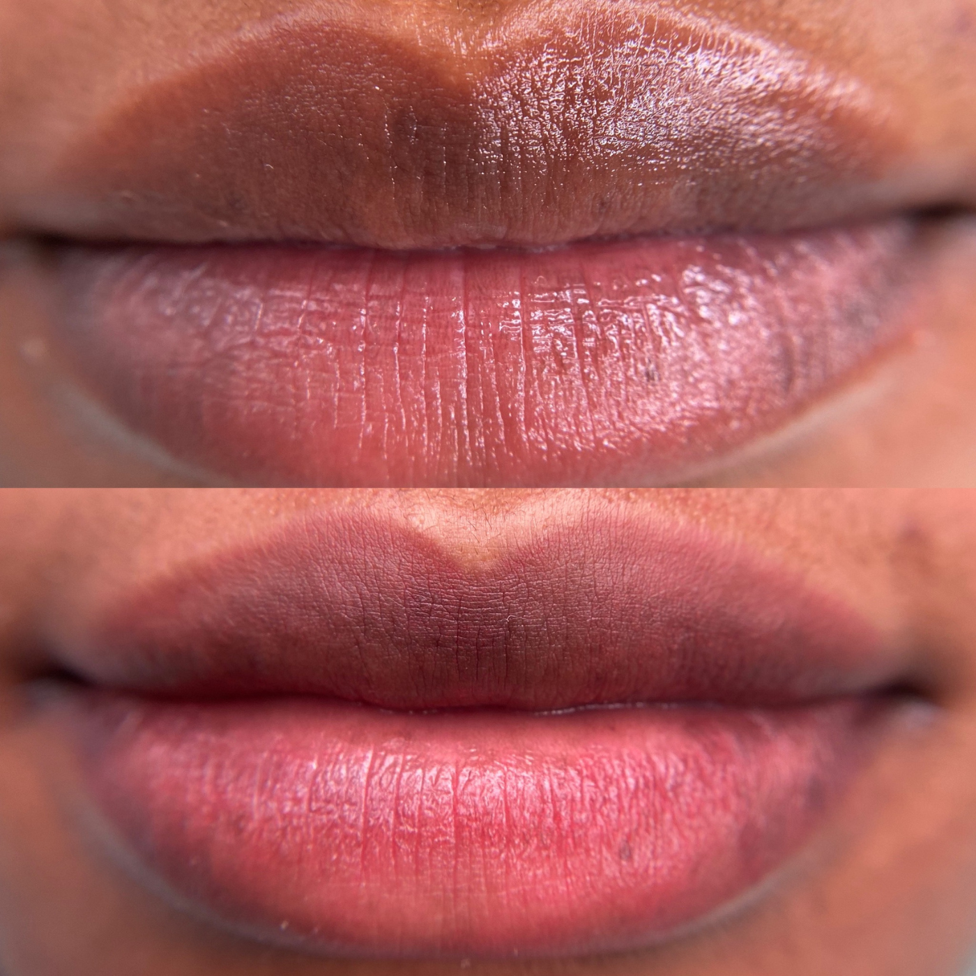 Enhance your natural lip color, restore symmetry, and add soft definition with our customized lip blush tattooing. This treatment revives pale, borderless lips and is tailored to flatter your unique features. For cool or uneven dark-toned lips, our specialized Dark Lip Neutralization technique gently corrects and brightens the tone for a more even, radiant finish. Experience natural-looking results that leave you feeling confident and refreshed.